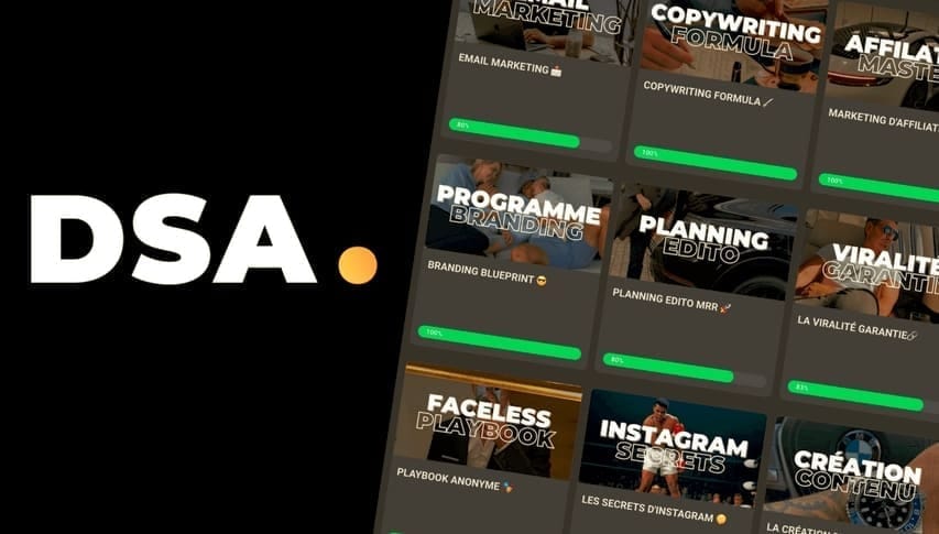 💥 La DSA est une formation en ligne conçue pour les personnes qui souhaitent lancer un business digital rentable, même sans aucune expérience. Elle t’accompagne pas à pas dans la création et la vente de produits digitaux, et t’apprend à utiliser le marketing digital pour générer des ventes de façon automatique.